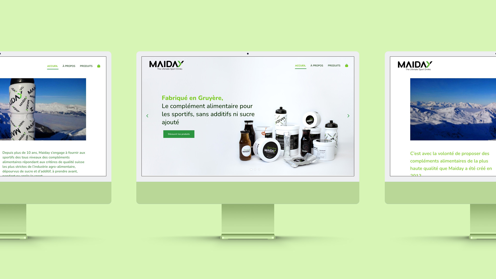 Maiday, marque suisse de compléments alimentaires dédiée aux sportifs, nous a contactés avec le défi de refondre leur site marchand le plus rapidement possible suite à une perte des données. Reconnaissant l’urgence et l’importance du projet, nous avons réussi le défi en sortant le site en 2 semaines.