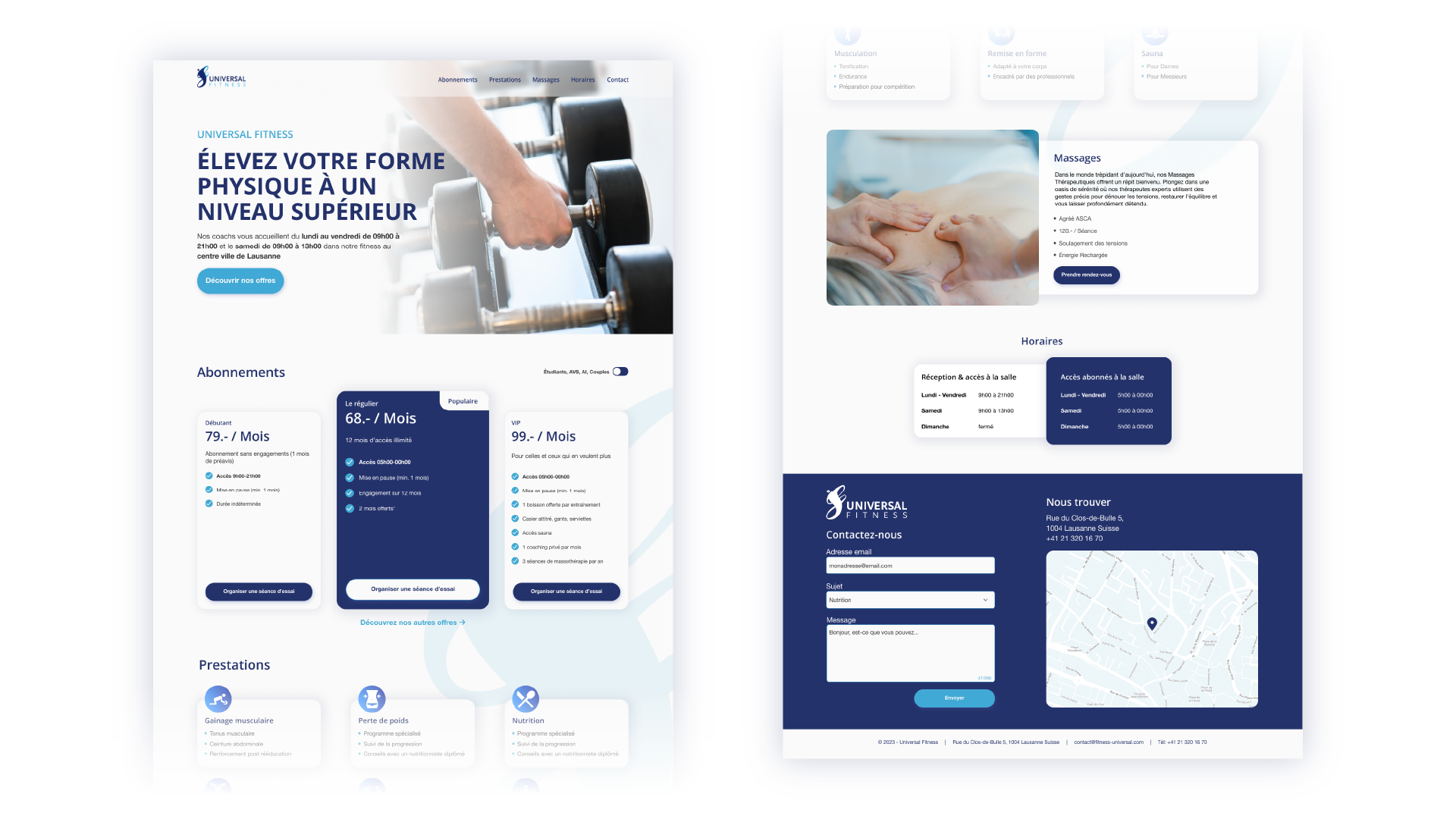 En collaboration avec Appogée, nous avons apporté notre expertise pour la refonte du site de Universal Fitness, club sportif situé à Lausanne. L’objectif était de moderniser le webdesign et de clarifier la hiérarchie des informations.